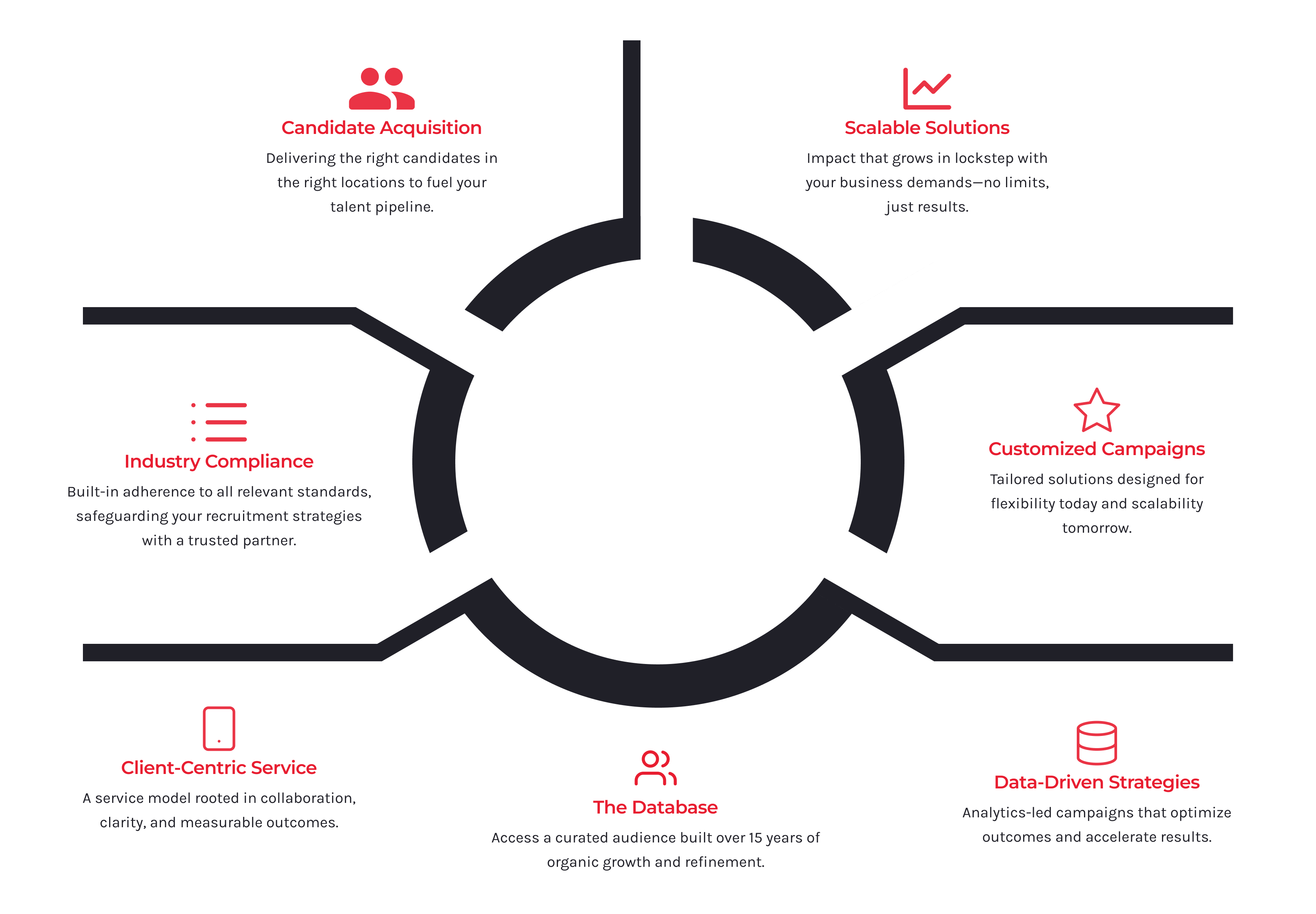 Candidate AcquisitionWe generate quality, geo-targeted applicants to fulfill hiring needs across various markets.